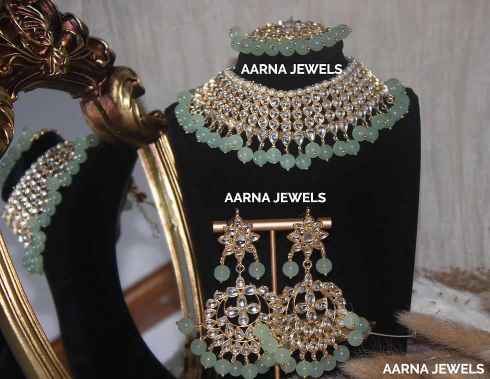 Discover the magic of tradition and elegance with our stunning range of necklaces. At Aarna Jewels, we specialise in exquisite Kundan stone necklaces and authentic temple-inspired designs that beautifully blend timeless artistry with modern sophistication. Explore our collection and find the perfect necklace to complement your unique style and celebrate your heritage.
